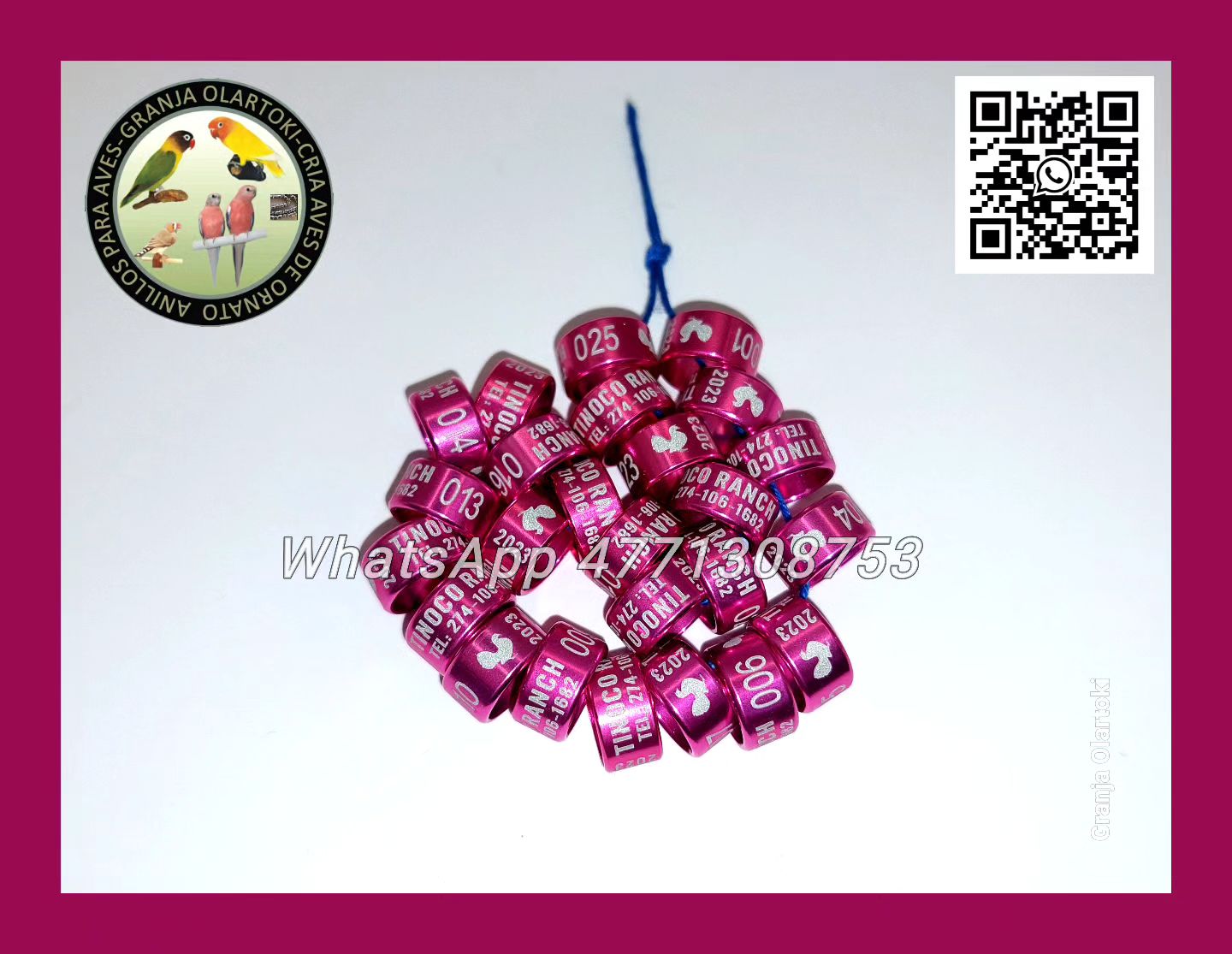 Anillos para Gallo Miniatura Hembra GRABADO LÁSER (Rosa Espejo letra Blanca).