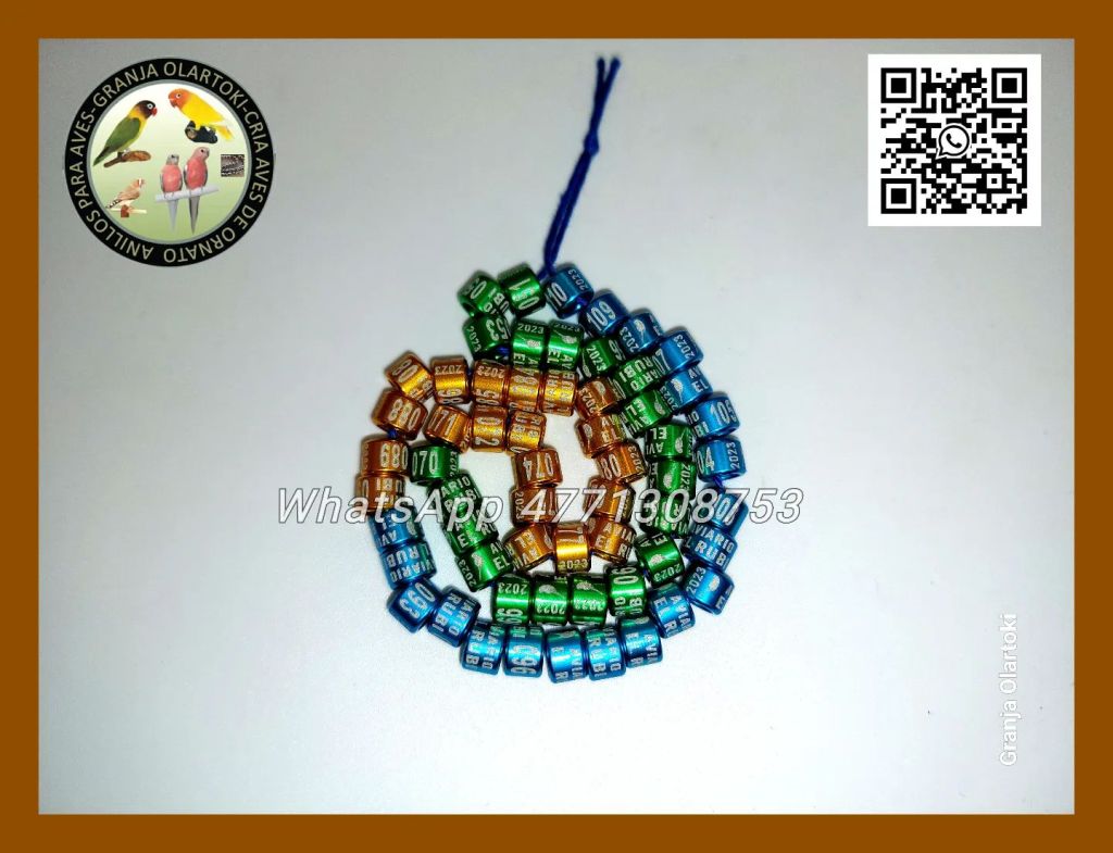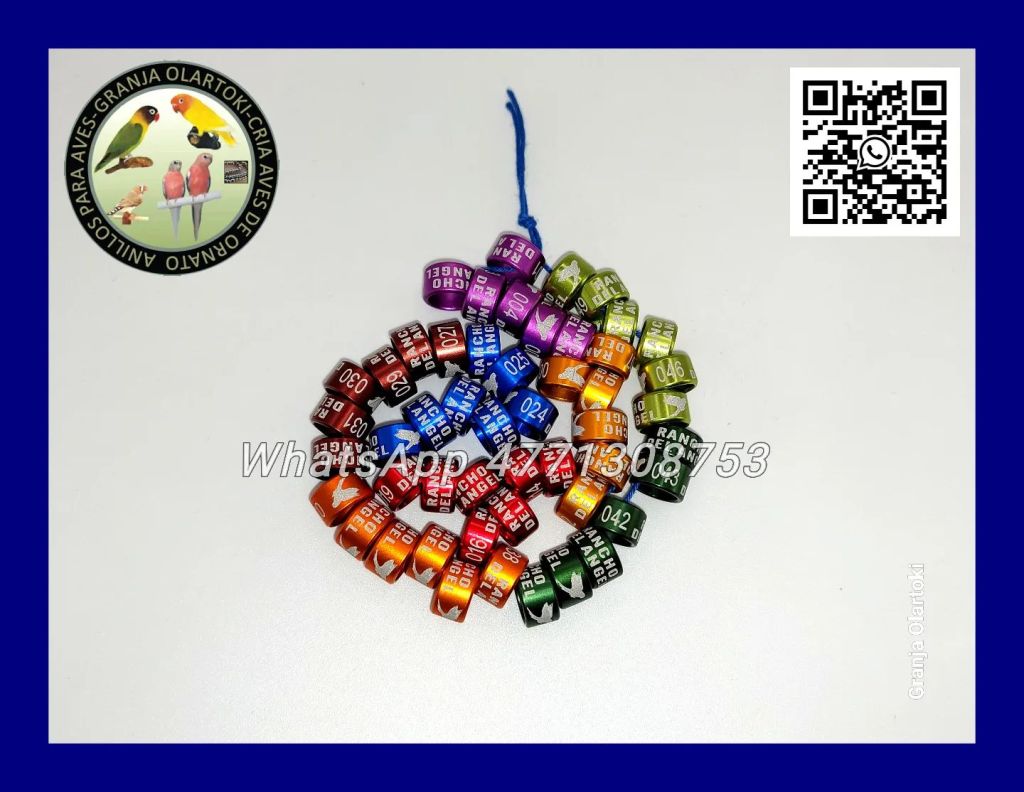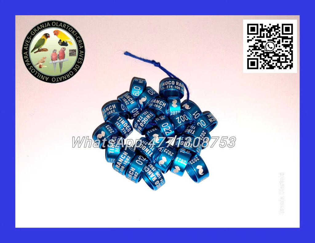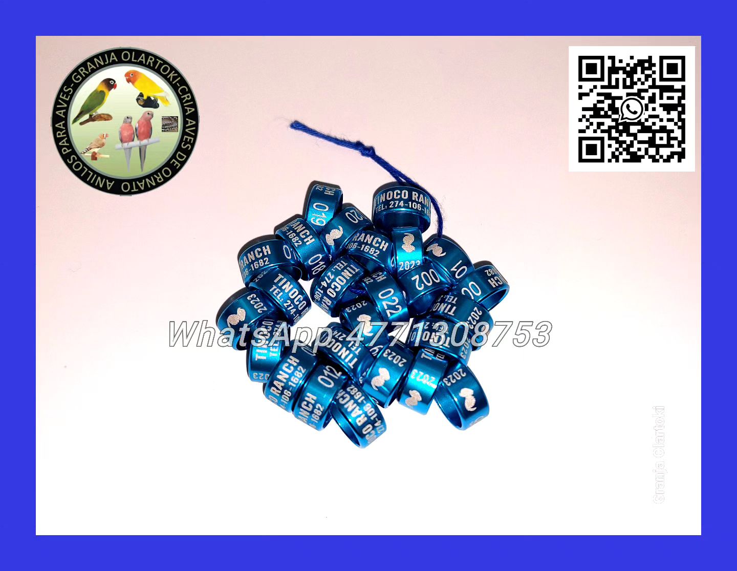 Anillos para Gallo Miniatura Macho GRABADO LÁSER. (Azul Metalico Espejo letra Blanca).