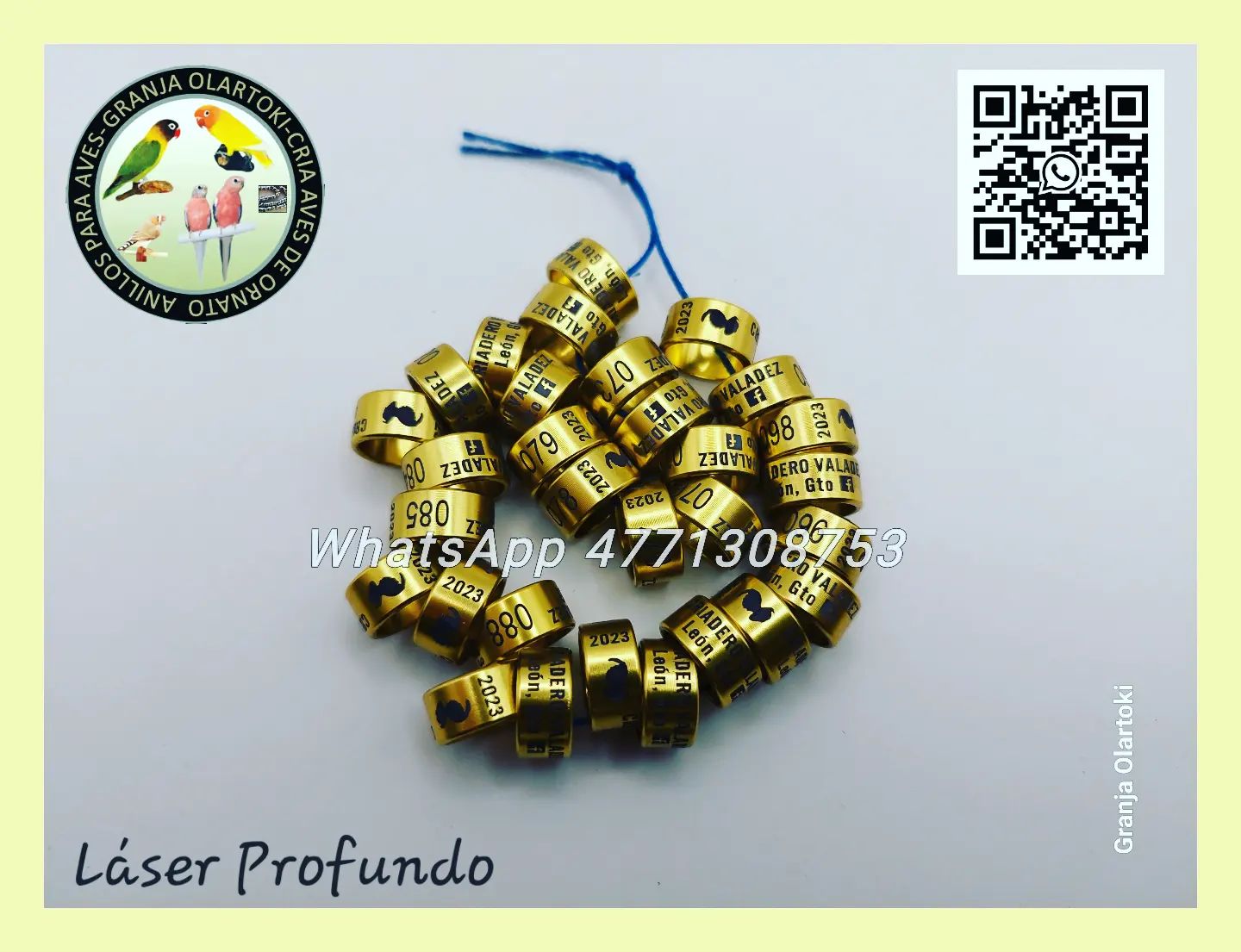 Anillos para Gallo Miniatura GRABADO LÁSER PROFUNDO. ( Amarillo Espejo letra Negra).